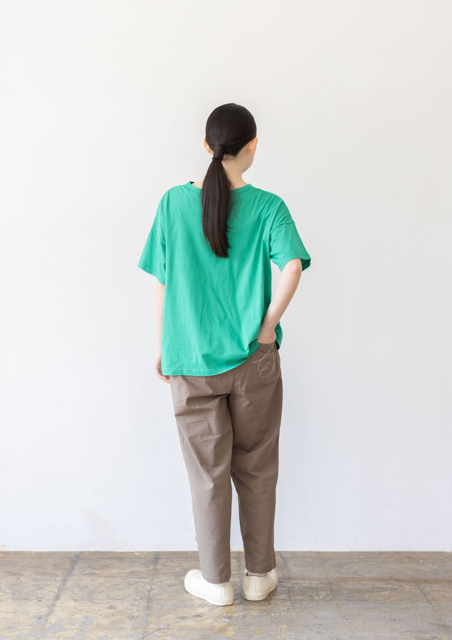 鳥刺繍ロールアップパンツ