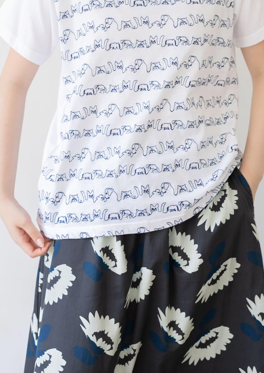 ネコとイヌ刺繍Tシャツ