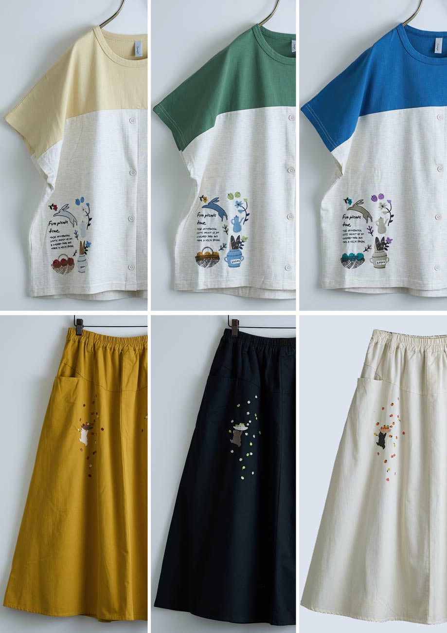 フルーツ摘み刺繍スカート