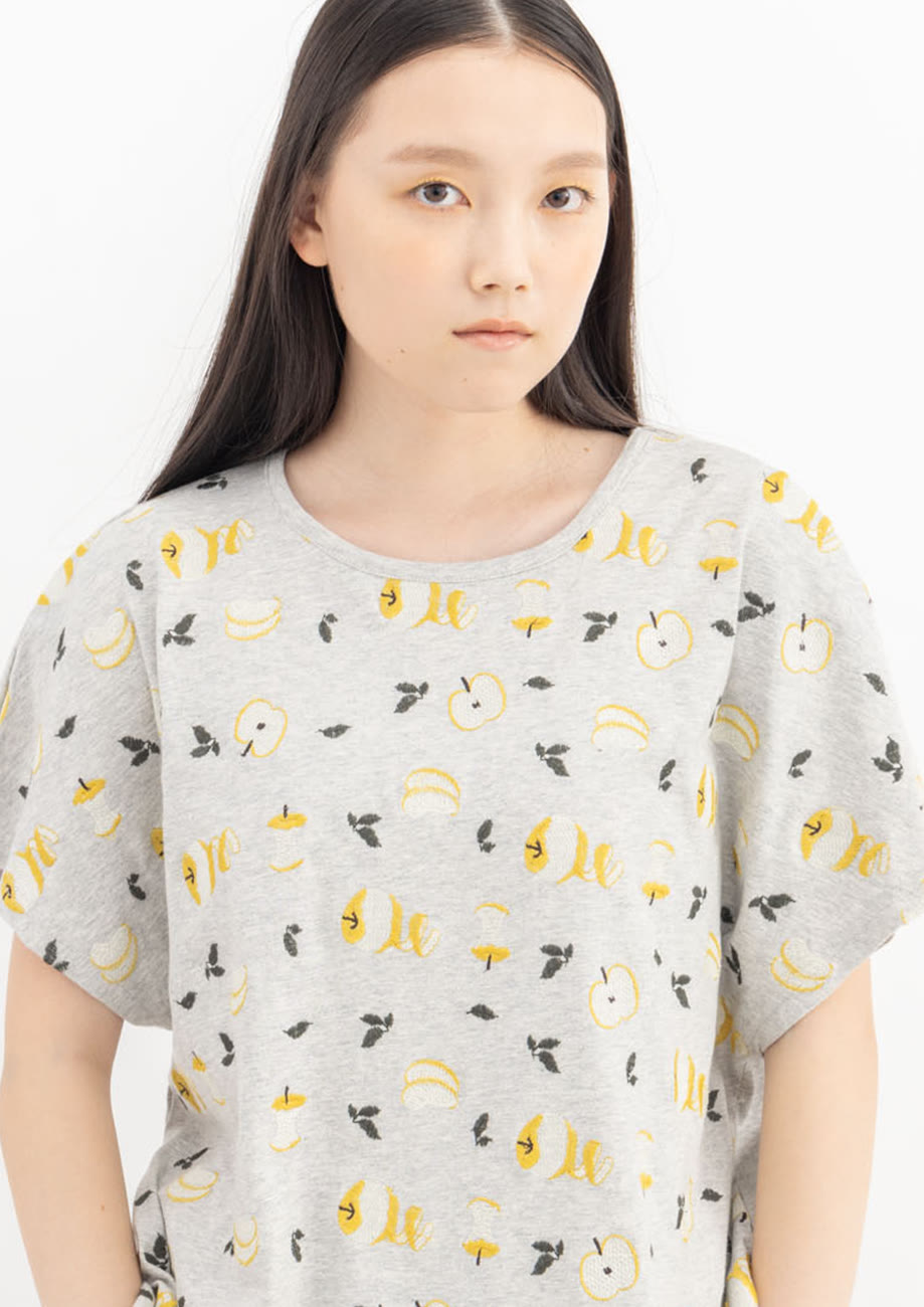 リンゴ刺繍ドルマンTシャツ