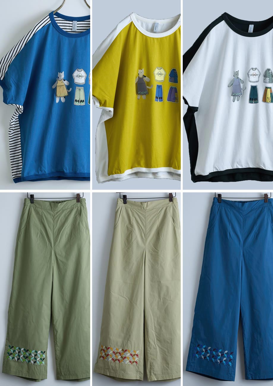鳥刺繍ロールアップパンツ