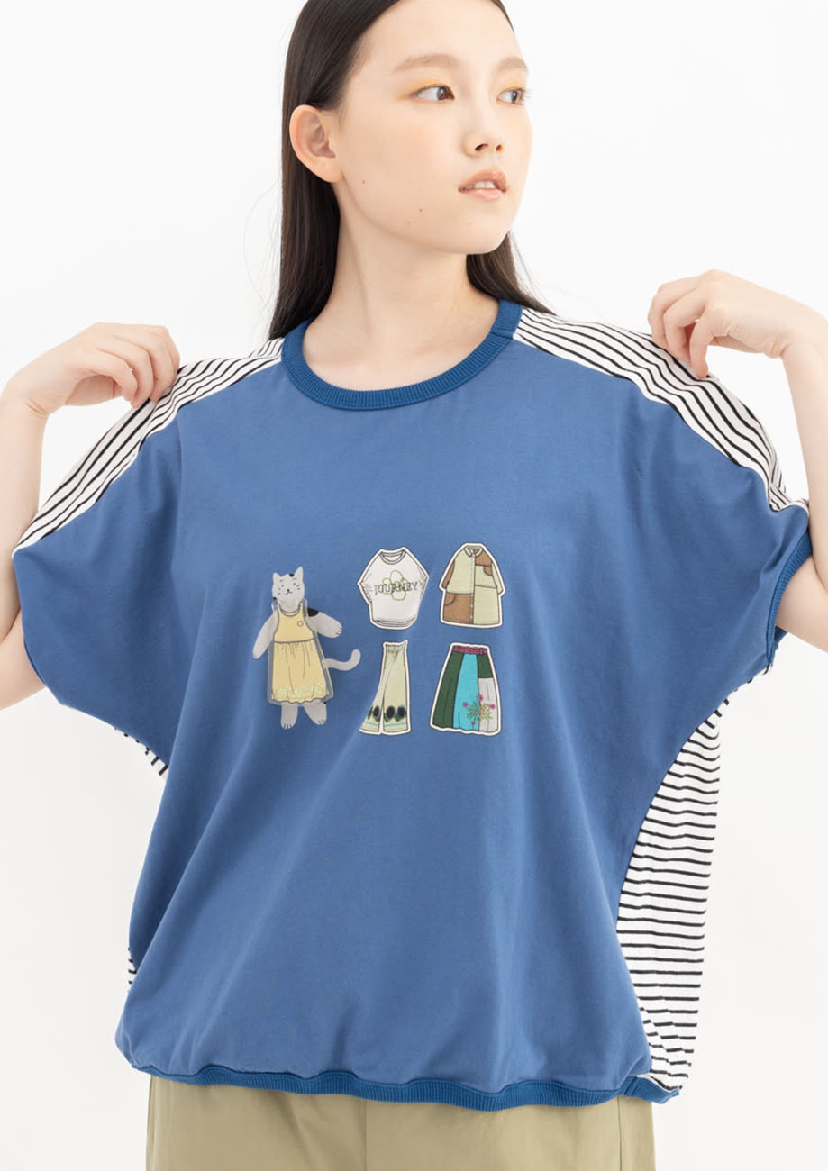ねこプリントドルマンTシャツ