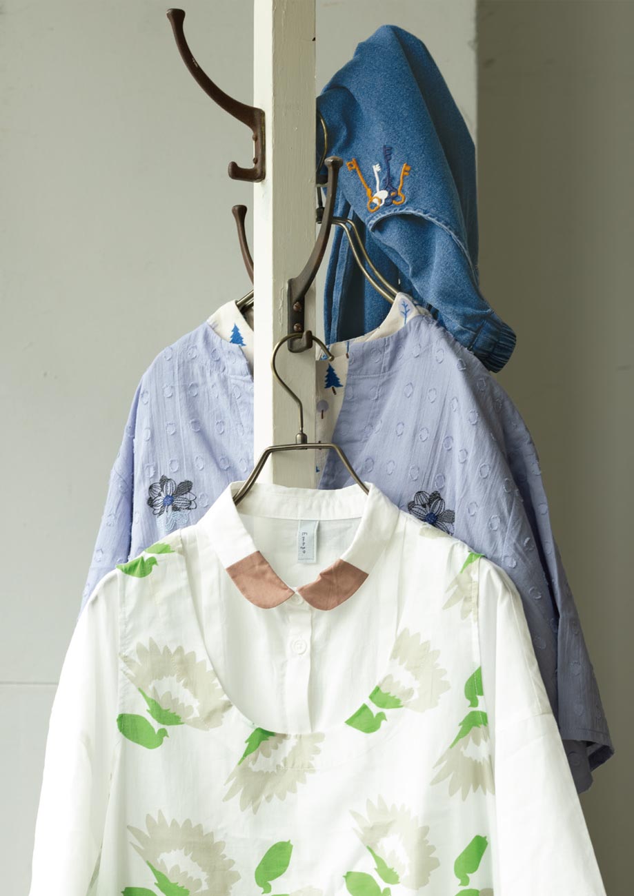 ピンタック花刺繍シャツ